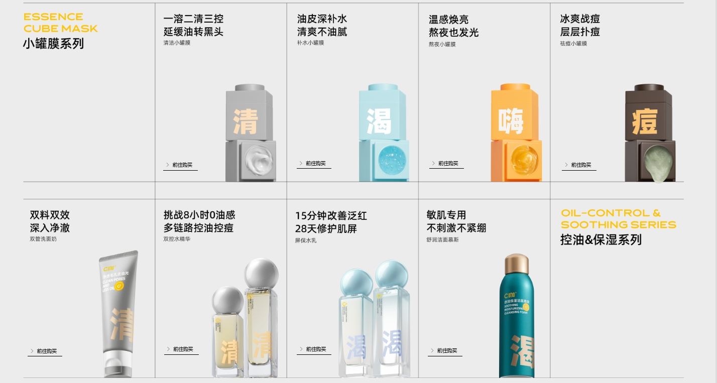 油皮修护系列:C咖控油清洁泥膜 · 第3代、C咖清净细肤水精华 · 第2代